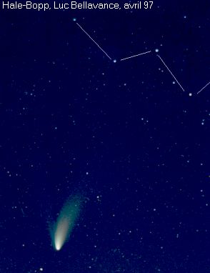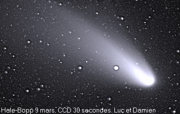 Les comètes sont d'énormes boules de neige sale essentiellement composées d'eau, de méthane, de neige carbonique, d'ammoniaques et d'autres matériaux volatils. Elles peuvent avoir entre 1 et 60 kilomètres de diamètre On distingue 3 sections composant une comète soient: le noyau, le coma ou chevelure et finalement la queue.