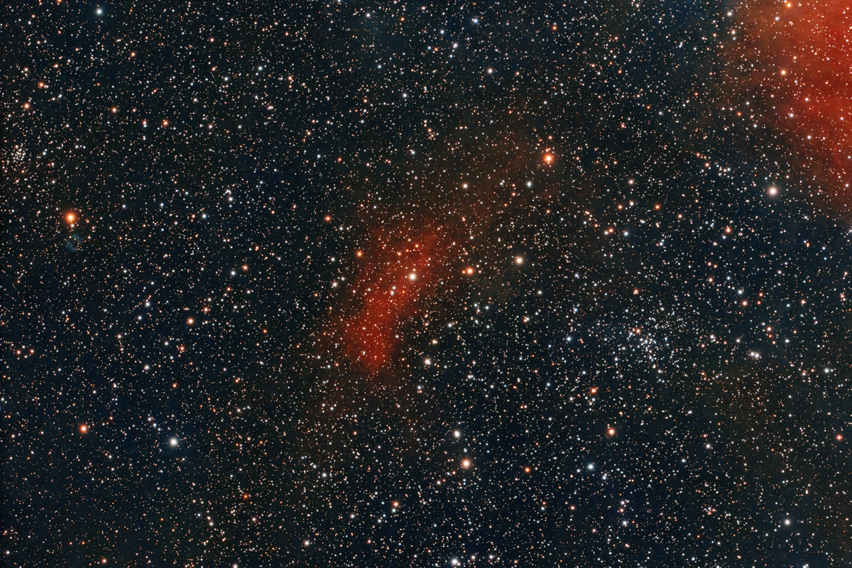 Nébuleuse dans Cassiopée avec la petite nébuleuse Outters-2 à gauche